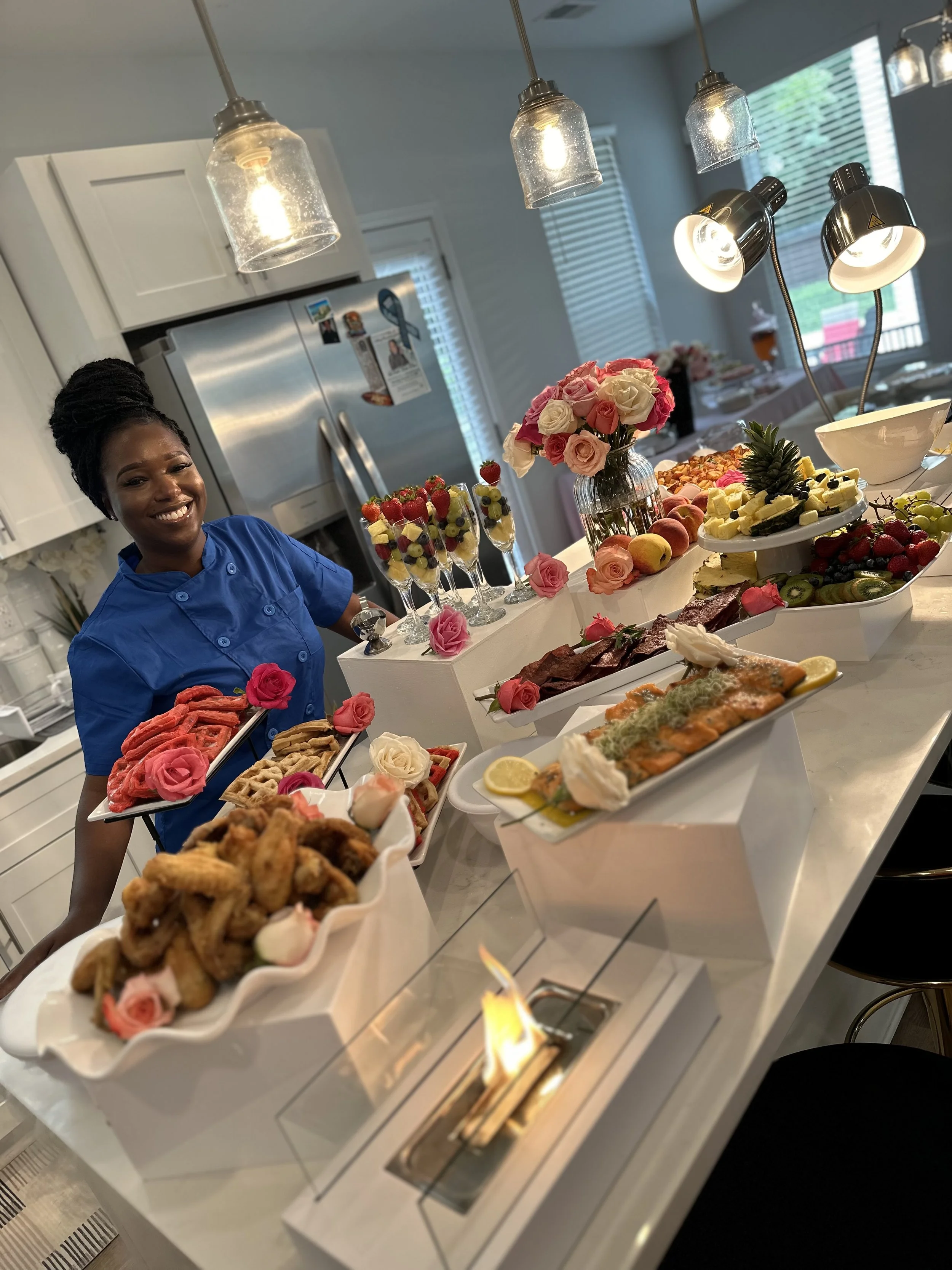 Upscale brunch catering in Charlotte, NC for baby showers, birthdays, and intimate gatherings. Chef LaShay delivers flavorful menus with beautiful presentation, offering both drop-off and full-service options.